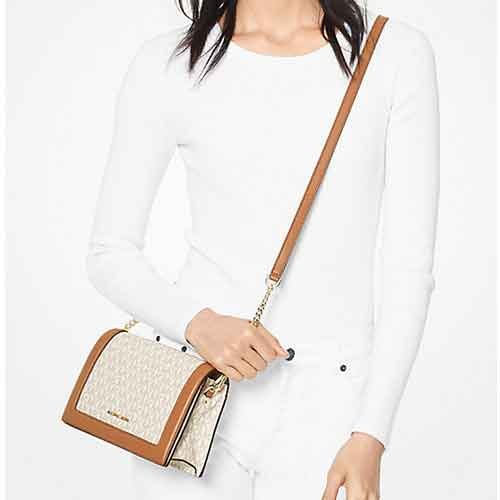 MICHAEL KORS Jet Set Large Logo and Leather Crossbody White Bag