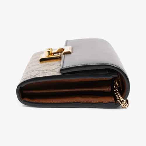 Gucci Padlock Wallet On Chain Beige And Ebony GG Supreme Black Coated Canvas