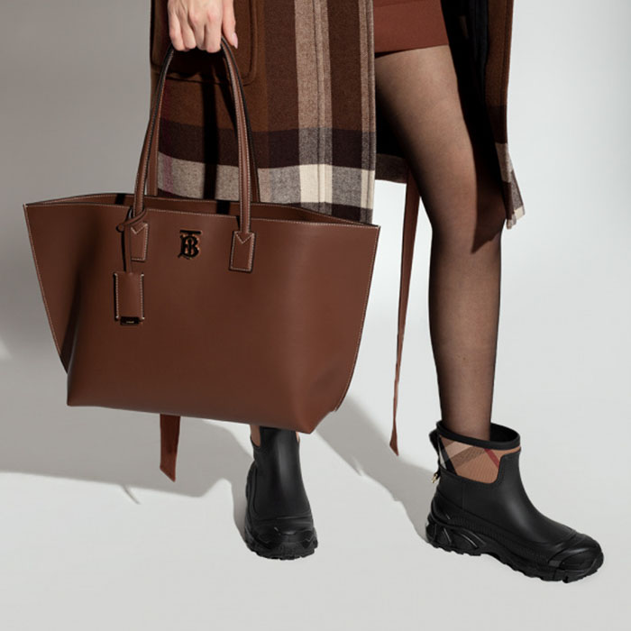 Brown shopper bag from Burberry. Crafted from calf leather, this design secures with a lobster clasp fastening and features two half-round handles,