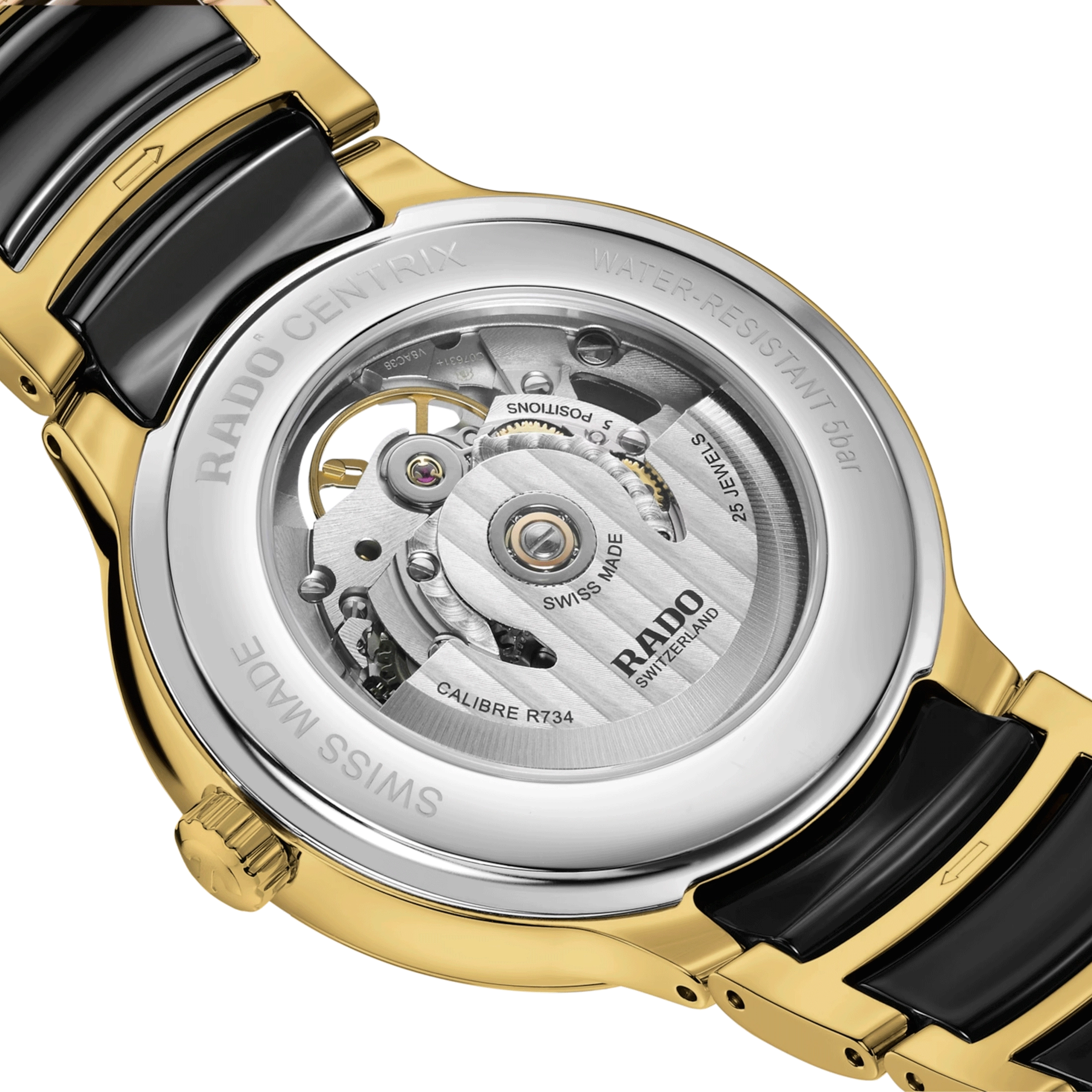 Rado Centrix Open Heart automatic watch green dial steel bracelet PVD yellow gold and black ceramic 39.5 mm