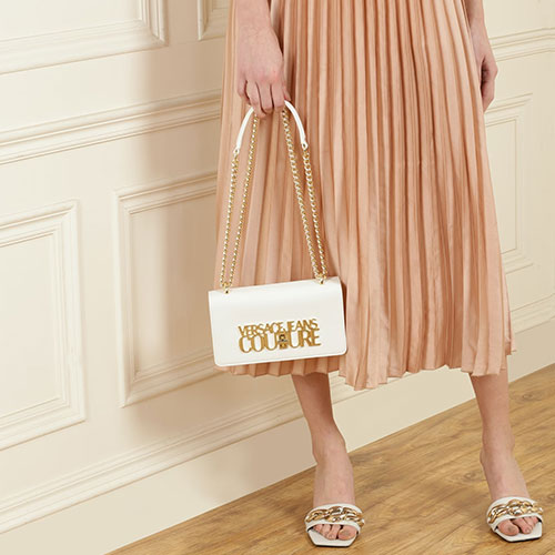 Versace Jeans Couture Women White Solid VJC Branded PU Crossbody Bag